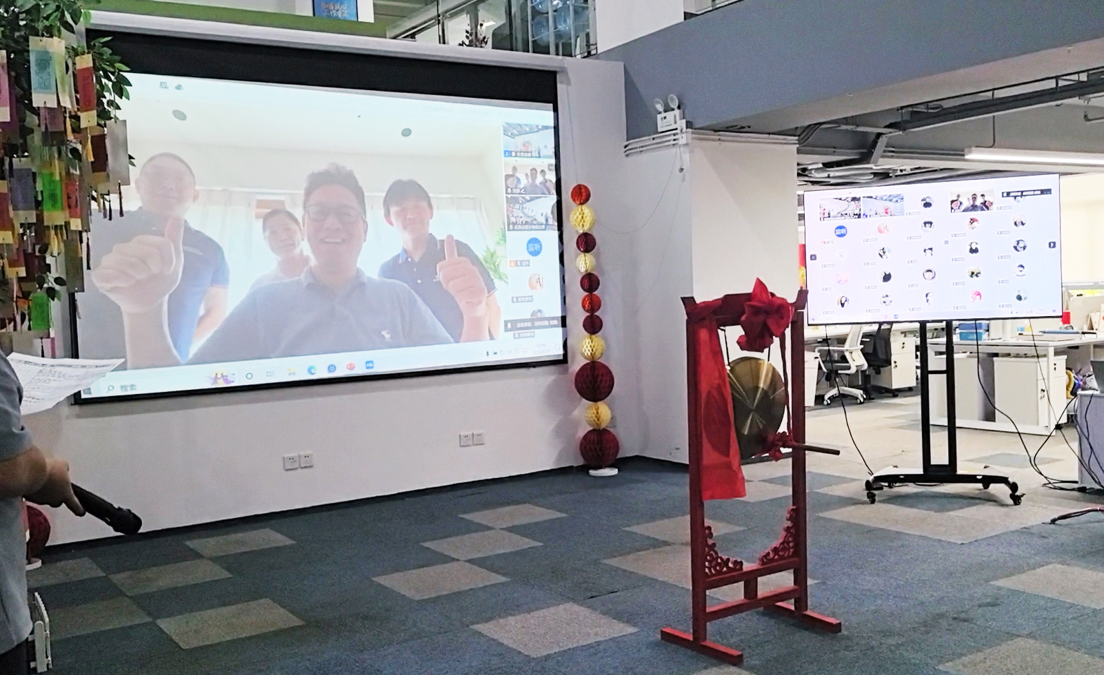 熟悉的敲锣古板如约回归!项目功勋成员配合敲响庆功锣,,,,,锣声里是对过往的喝彩,,,,,更是对未来的期许。。。。。合影定格优美,,,,,高管与部分认真人共切五周年蛋糕,,,,,为盛会画上圆满句号。。。。。